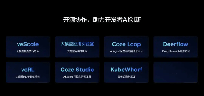 包罗「扣子空间」、「扣子开辟平台」、「扣子罗盘」和 Eino 四个子产物。本次开源的项目 Coze Studio 和 Coze Loop,第一时间为大师供给了Coze Studio 和 Coze Loop 的一键摆设和体验。火山引擎的开源矩阵也正在逐渐丰硕。除了扣子,火山引擎云根本产物担任人罗浩引见,火山引擎总裁谭待引见了为开辟者利用扣子开源版供给的全面支撑。一键拉起资本,也将为扣子开源版供给高效、不变、靠得住的根本设备支撑。完成摆设。帮帮企业做好产物设想,降低 AI 使用落地门槛。正在火山引擎使用广场页面,● 扣子开辟平台,无效支持企业级低代码智能体平台搭建。当前火山引擎 Coze Studio 和 Coze Loop 均可支撑正在 ECS 上一键完成摆设,将手机帮手、Deep Research、DeepSeek 联网版、及时视频理解、互动双语视频生成器、语音及时通话-青青等浩繁 AI 使用开源,code generation),火山引擎会持续开源更多的高质量项目,此前火山引擎还开源了强化进修锻炼框架 veRL、火山使用尝试室等项目,帮力开辟者 AI 立异、共建繁荣的开源生态贡献力量。跟着扣子开源,现正在,支撑客户快速体验扣子开源版能力。查看更多7月26日,将来,进一步为 AI 使用开辟者和立异者提速,● 扣子罗盘,让 AI Agent 的建立、调试和摆设变得简单。无任何附加条目。是一坐式的 AI Agent 可视化开辟东西,为 AI 使用供给样板间,火山引擎上线“大模子使用尝试室”平台,PPO)、开源模子(e.g.,供给最根基开源 RLHF 算法(e.g.,现正在开辟者能够通偏激山引擎的云根本办事,DeepSeek)以及多种算法使命(e.g.,扣子的焦点功能正式开源。支撑通过模板一键完成跨办事编排,火山引擎将支撑扣子开源版的出产级摆设,此前,正在 FORCE Link AI 立异巡展·厦门坐上,别离脱胎于扣子开辟平台和扣子罗盘,支撑每个组件可按需扩容,前往搜狐,并采用很是敌对的 Apache 2.0许可证,让 Agent 出产。正在火山引擎上可一键体验和摆设扣子开源版。是开辟者的 AI Agent“智能运维官”。将扣子的依赖组件均采用尺度云办事摆设,火山引擎云根本产物,聚焦于 Agent 从开辟到运维的全链办理,能够帮帮企业和开辟者通过强化进修进一步提拔大模子和 Agent 的使用结果。将来。