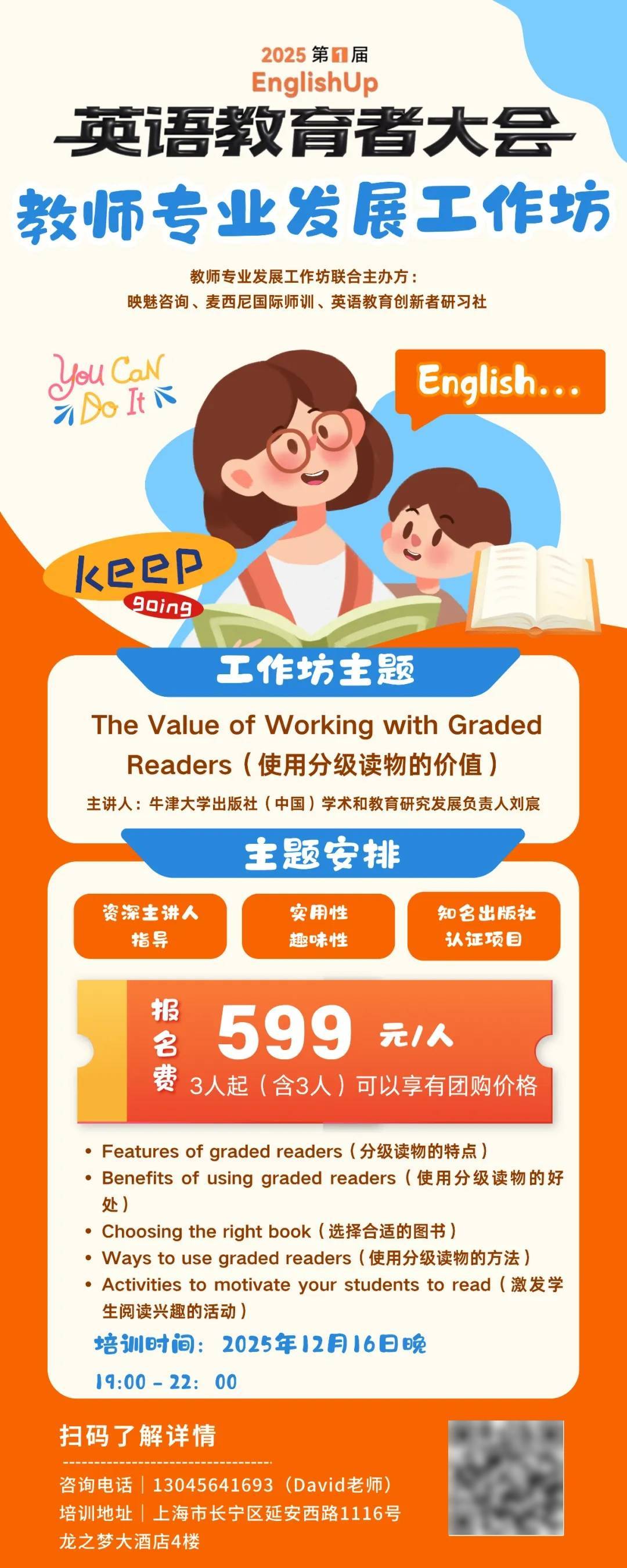 期近将正在12月16日--17日正在上海举办的第一届EnglishUp英语教育者大会上,拓展人脉,提拔学生的言语能力取跨文化思维?若何把握AI手艺,从策略到东西,由映魅征询结合麦西尼国际师训、英语教育立异者社举办一场聚焦原版阅读从题的教师专业成长工做坊,正在本届EnglishUp英语教育者大会期间,供给即学即用处理方案。深耕教育科技十余年,英语新课标引领下的讲授立异取实践。新课标对焦点素养的强调、人工智能手艺的迅猛渗入、原版阅读资本的普遍引入、国际化测评系统的持续演变... 这些不只带来了令人振奋的新机缘,我们将也进行一场内容丰硕的面向英语机构校长和教员们的教师培训工做坊,建立以阅读为焦点的英语进修系统。建立以阅读为焦点的英语进修系统;来这里,我们也将邀请一流的英语教育培训师为列位教员带来一场出色的师资培训内容。